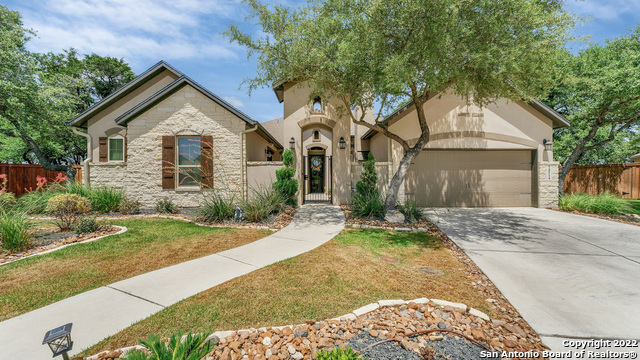 STUNNING ONE STORY HOME w/ ATTACHED GUEST SUITE nestled at the end of a cul-de-sac on almost 1/3 of an acre in the gated community of Monteverde at Cibolo Canyons. This property was the former model home for Imagine Builders and if you find value in meticulous attention to detail then this home will check all the boxesFeatures include 3 bedrooms/2.5 bathrooms in main home, 1bed/1bad in attached guest home, formal dining room w/floor to ceiling limestone accent wall, spacious gourmet kitchen w/GORGEOUS custom cabinetry throughout and sliding barn doors to hide a kitchen nook/work zone, banquet seating, 48" commercial range w/double ovens, 8' island workspace, designated office, family room w/ shiplap walls, stone fireplace, picture windows, HUGE owners retreat w/ spa like bathroom, large walk-in closet, 3-car tandem w/additional garage, solar panels, covered back patio w/ tongue and groove wood ceiling, flagstone patio extension w/ firepit, fully landscaped front and back yard w/ tons of mature oak trees for shade and privacy, no back neighbors and so much more. With over $150,000 in upgrades this home is truly a STAND OUT! This community offers scenic views of the hill country, unparalleled amenities, the world-class JW Marriott San Antonio HC Resort/Spa and 2 PGA Tour-TPC golf courses. Come see this home today!