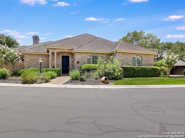 Located on a private cul-de-sac in the Dominion, this one story estate with no interior steps, boasts architectural and custom features throughout the home. With high ceilings, a Cantera stone fireplace, and large windows showcasing the private back patio you can see from the moment you step inside that quality is the keynote here. Modern elements and warm tones accent this designer interior, to include: wrought iron details, plantation shutters, beautiful light fixtures, and one of a kind plaster. The kitchen offers Viking appliances, a large island with storage, and a walk-in pantry. The family room includes a wet bar, fireplace, and Saltillo tile accents. Continuing to the master bedroom, which is a true oasis, with an updated bathroom and two walk in closets with built-ins. Two spacious secondary bedrooms each with their own full bath. Enjoy the serene and private backyard year round on the covered patio featuring a garden like atmosphere. Complete with mosquito nix system and a dog run. Extensive storage in the oversized 2.5 car garage with space for a golf cart. Recently replaced AC units, a water heater, and water softener. Lock and Leave!